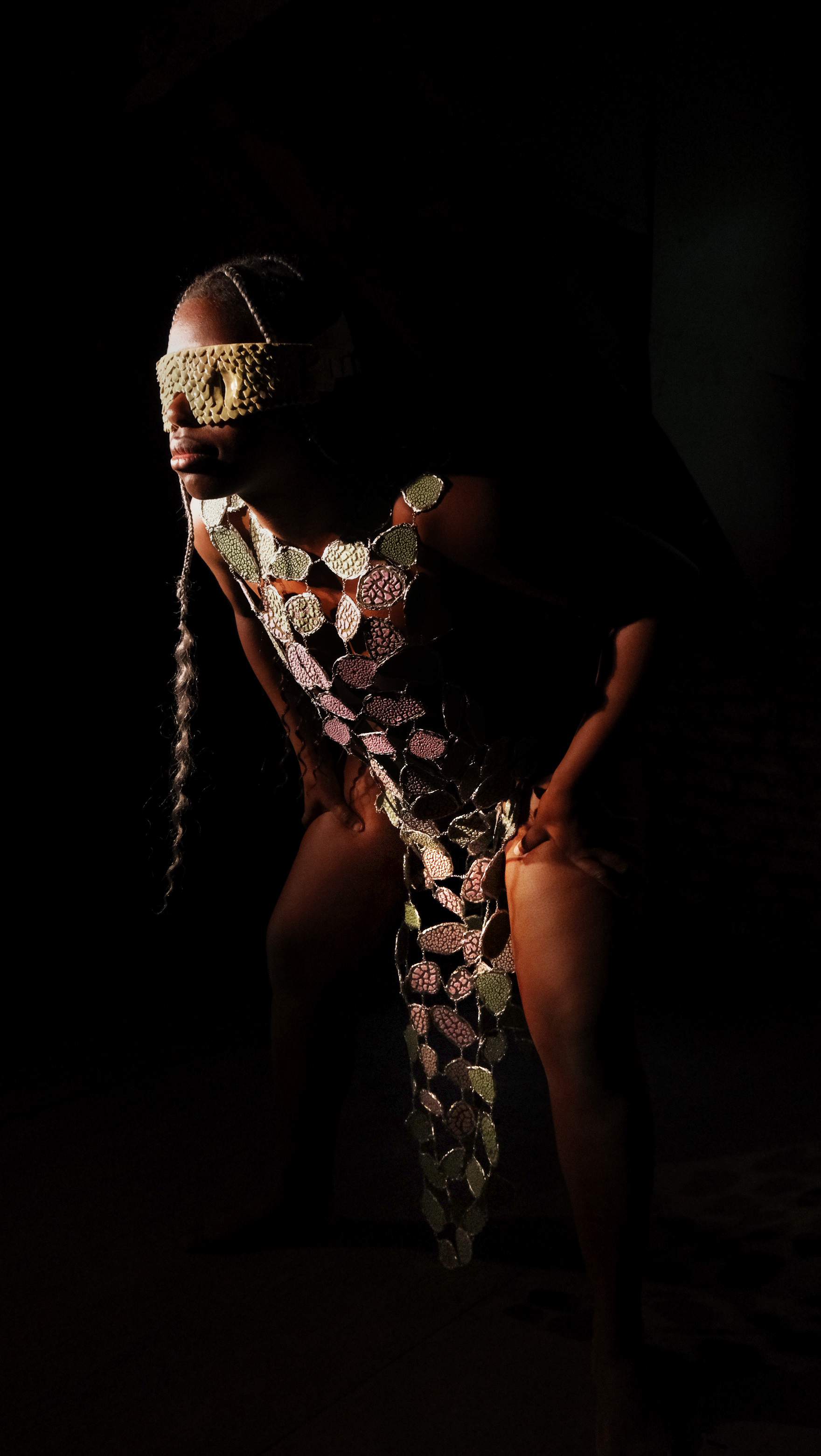 Reptiliennes met en lumière les femmes en s’inspirant de figures féminines légendaires telles que Mélusine, mi-femme mi-serpent, les sirènes, les Héléades, et d’autres créatures mythologiques. Ces figures, souvent empreintes de récits teintés de misogynie, que je tente de réinterpréter dans une vision plus contemporaine. Je qualifie mes pièces comme des « peaux ». Ces secondes peaux, à l’image des reptiles, évoquent la mue – ce processus de métamorphose et de réinvention profondément lié à la condition féminine. Elles symbolisent également l’idée de la carapace, pour se protéger. Le lien avec avec la maille est tout aussi important elles deviennent des armures symboliques. Créant ainsi une dualité entre fragilité et résilience.